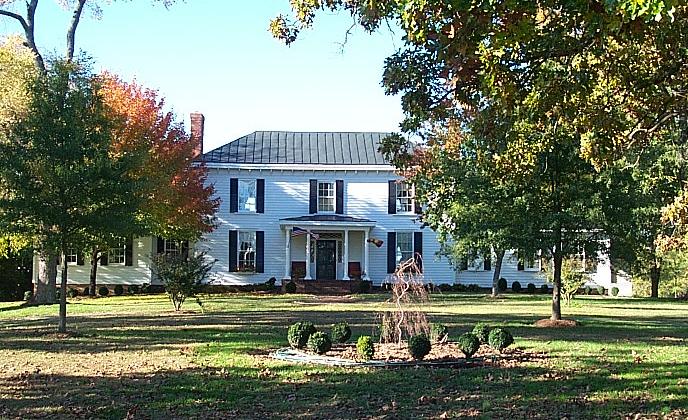 Glenwood - Circa 18477040 Philpott Road Glenwood was originally part of the Glenn family tract that covered much of this area. James Anderson Glenn of Bloomsburg was one of the four children of Archibald and Mary Cunningham Glenn, born in 1836, was married in 1857 to Susan J. Major of Halifax County and lived at Glenwood. Attached to the back of the house is the orginial frontier log cabin. The well, still being used today, was dug and built by slaves. By Barbara Bagwell, The Gazette-Virginian, April 5, 1996 Glenwood, off Rt. 58, will be open for the Halifax Woman's Club's Spring Homes Tour on Saturday and Sunday, April 27 and 28 from 1:00 to 6:00 p.m. Six houses will be on tour, and tickets are $6.00. At the end of the long plantation road from the highway the imposing Georgian house with hop roof, bracketed cornice, matching wings, and one-story Greek Revival porch creates a pleasant visit. It is the home of Walter and Barbara Bass, natives of this county who have just returned here to live. Barbara recently retired from a good many years of teaching math at St. Catherine's School in Richmond and is now teaching two days a week at Danville Community College, while Walter is so busy with his interest in history and his work on the house and yard that he doesn't have time to miss his job in research at American Tobacco Company. They bought this place several years ago and have been steadily restoring and improving it, as the recent addition of the wings on each side shows. They have filled it with an eclectic mix of antique and modern furnishings and accessories reflecting their travels and their interests. The grove of old trees is a perfect setting for the circular drive in front of the house and for the garden the couple is laying off to the right with one hundred and fifty azaleas planted here and others in the round garden in the center of the circle. The built-in greeting committee here is a pair of white and light brown spotted St. Bernards, glad to see company. Entrance to the house is through double wood doors painted dark green and surrounded by diamond mullioned sidelights. This front part of the house was built in 1840 and has the original, heart pine floors and handsome woodwork typical of that period. Framing the doors is a wide T-shaped molding, and at the ceiling there is a three-step cornice. The balusters along the steps are topped just under the railing by an unusual molding with cathedral arches so typical of the Empire period. Barbara refinished the railing herself, and the house has all over it examples of her artistry in paintings, embroidery, and sewing. Walter is the builder, and they are both musically talented. As the visitor enters the hall, he or she is surprised by the light streaming down from the second floor window set above the stair landing, which extends the width of the hall, a striking architectural feature of the house. The color of the walls is Williamsburg gold and the woodwork is putty. A glass and brass lantern fixture hangs over the Oriental runner on the floor, providing a setting for the pier mirror, and old blanket chest, a long Chippendale table, split-bottom chairs, and a low table holding a collection of arrowheads. A powder room opens off this hallway. To the right is the living room with its tall windows and draperies made by Barbara, as they are in the rest of the downstairs. Those here are flowered, matching the Queen Ann wing chairs. The color of walls and woodwork repeats those in thehall, and the Oriental rug is predominantly rose-red and blue. One of Barbara's paintings hangs over the mantel, and opposite is a long Chippendale sofa upholstered in a rose red moire' with a Queen Ann coffee table in front. There are various arm and side chairs here, a schoolmaster's desk, and a Queen Ann highboy and lowboy. Three panels of Chinese embroidery hang on one wall, and the lamps also are Chinese. The master bedroom, adjacent to the living room, occupies the new wing on the right. It features skylights, a large, walk-in closet and a bath with jacuzzi. Barbara made the off-white draperies with rose border and also embroidered the needlework sampler here. A flowered needlepoint rug picks up the colors in the room. The tall, walnut poster bed is covered with a white, woven coveriet,and the tester is adorned with tassel crochet trim. A small chest is at the foot of the bed and a rose velvet upholstered stool at the side for a step up. Duncan Phyfe pie crust tables are used at the side. A large dressing chest with mirror over it occupies one wall, and a smaller chest holds the TV. Book shelves fill one corner,and a rubbing from the temple of Confucius on their China trip and a Mayan rubbing from Mexico hang on one wall. The most interesting wall decoration is an assemblage of colorful interpretations that the art students at St. Catherine's did of the same picture of Barbara, to be one of her going away gifts. An electric organ enables Barbara to enjoy her music in spite of having given away her concert grand piano, due to its space consumption. A return to the hall carries the visitor to the dining room on the left, where the long table with turned legs was made by Walter's great-great-grand-father. It stands on an Oriental rug, and a chandelier hangs over it. Chippendale chairs with needlepoint seats are used with it. A mirror framed in gold leaf hangs over the large plain mantel and the brick fireplace. In one corner is a very rare barrel-back corner cupboard holding blue and white Spode. On one wall a Regency sideboard stands and on another a large, lighted china cabinet. Over the door is a display of a series of rare French plates illustrating Lafayette's life in America. The piano here replaces Barbara's concert grand. Next to this room is the new wing containing the kitchen. A Lawson sofa upholstered in blue and white plaid divides the sitting room half of the room from the cooking section. Unusual tables of contemporary design are used o