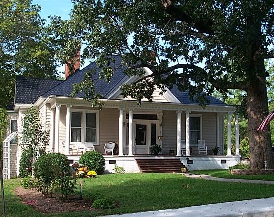 Built in 1908 by Tucker Carrington Watkins, Jr. The style is Vernacular with a 3-bay porch with paired Ionic columns. One of the few homes of this time in South Boston's history to have indoor bathrooms (one for the Watkins family and one downstairs for the cook and the driver who lived below.) There was an old water tower in the backyard to flush toilets by gravity. They sold the house in 1920 and built a new home at 1146 North Main Street. Mr. Watkins was president of the Annual Tobacco Festival. He was also Highway Commissioner for the Lynchburg, VA District. |