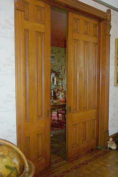 Separating the music room and the formal dining room and the formal parlor from the music room are pocket doors that have their original finish and are in excellant condition.
