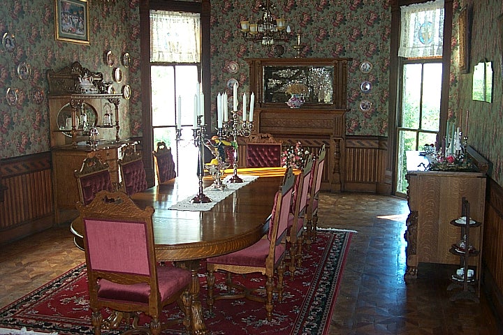 The dining room is 16' x 30' with windows that go to the floor, which is parquet as is the floor in the music room. The original gas light fixtures are still in place, although they have been electrified.