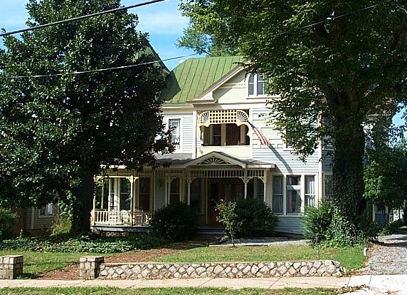 Queen Anne Victorian house with gable roof, 6-bay wraparound porch with turned posts, spindle frieze, turned balustrade. Built by the Willingham family in 1899. Purchased by the Dickerson family in 1920 and remained in the Dickerson family until the 1980's. Mr. Dickerson started a pool hall in 1901, and was located downtown at 521 N. Main Street. Mrs. Benjamin Dickerson's maiden name was Terry and her sister married E. B. Jeffress. Their portraits hang in the South Boston - Halifax County Museum of Fine Arts & History. |