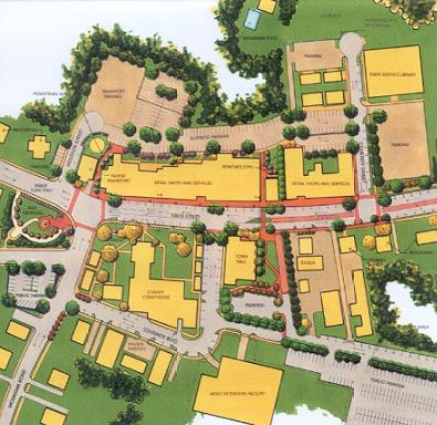 The following materials summarize the results of a revitalization planning process undertaken for the downtown area of the Town of Halifax, Virginia in 2002 and 2003. The plan was prepared through a highly interactive public process involving Town of Halifax and Halifax County staff and elected officials, the Town of Halifax Village Business Association, an active Downtown Improvement Committee, the Southside Planning District and consultant facilitators. Several well-attended public meetings as well as numerous newspaper articles served to both inform and involve the general populace of the community. The following public meetings were held during the preparation of this plan: November 6, 2002 Public Information Meeting and Merchants Meeting December 11, 2002 Public Hearing and Merchants Meeting The revitalization plan is based upon several ongoing community initiatives and past plans, including: "Downtown Preservation Sketchbook" prepared by Johnson, Johnson & Roy/Inc. in June 1974 Downtown Business and Consumer Surveys in July 2002 Greenway and Pedestrian Trail Concept Designs Coordination with the Virginia Department of Historic Resources and the Association for Preservation of Virginia Antiquities Issue and Condition Inventories of the Downtown Area Overall Project Goals The primary goals of the community in preparing this plan are to provide economic opportunity for residents and businesses and to improve the quality of life for the citizens, not only in an economic sense, but also by providing a more attractive environment and places for public gatherings and interaction. This plan is intended to serve as a vision for the future of the downtown Halifax area and as guidance for phased funding, design and improvements to both the public infrastructure and the facades, parking and pedestrian access for businesses in the downtown area. There have been numerous other added benefits for the community in the preparation of this plan. These include the basis for the establishment of a "Village" identity for the downtown and for the overall Town of Halifax as well setting the groundwork for a number of other initiatives. These include: Business Incentive Package. The Town has some vacant space, most notably the former grocery store site on the east side of Main Street south of the core business area. Community and business leaders have considered methods for attracting businesses to the Town. This plan provides materials that outline the community vision for the future and that illustrate the commitment of the community to future economic growth and vitality. These materials may be developed into an incentive package describing opportunities within the Town for businesses to relocate. Historic Inventory Support. The plan and the analysis materials generated provide support for the potential application for a historic district in the downtown area. Greenways Planning and Implementation. The plan provides an initial outline of a Town greenways system that would connect to the downtown area, providing both pedestrian access for residents to the downtown and an attraction for visitors to the area. The maps included in this plan provide a basis for implementation funding and the development of use agreements. Background and Support for Grant Applications. A primary focus of the preparation of this plan has been to provide the materials and study necessary for application for CDBG grant funding and for TEA21 grant funding for implementation. In addition, the plan provides materials to support other types of grant funding that may become available, and also provides budget and phasing information to assist the Town and the County of Halifax in establishing potential local share funding through the Town's Capital Improvement Plan and other funding sources. History and Setting Formed in 1752 from Lunenburg County, Halifax County is the fourth largest County in Virginia, encompassing nearly 825 square miles. Halifax County is an historic tobacco and textile industrial area of south central Virginia consisting of generally flat or gently rolling land located along the Dan and Banister Rivers. The Town of Halifax, originally called Banister, became the County seat in 1792, and is located 113 miles southwest of Richmond and 80 miles northwest of Raleigh. Main Street from the intersection of Houston Street to the intersection of Cemetery Street serves as the core economic hub of the Town of Halifax. This area features late 19th and 20th century storefront buildings, and is anchored by a landmark early 19th century County Courthouse. The early community most likely developed as a result of its position as the center of County government, nevertheless, Halifax has remained a small comfortable village. Study Area